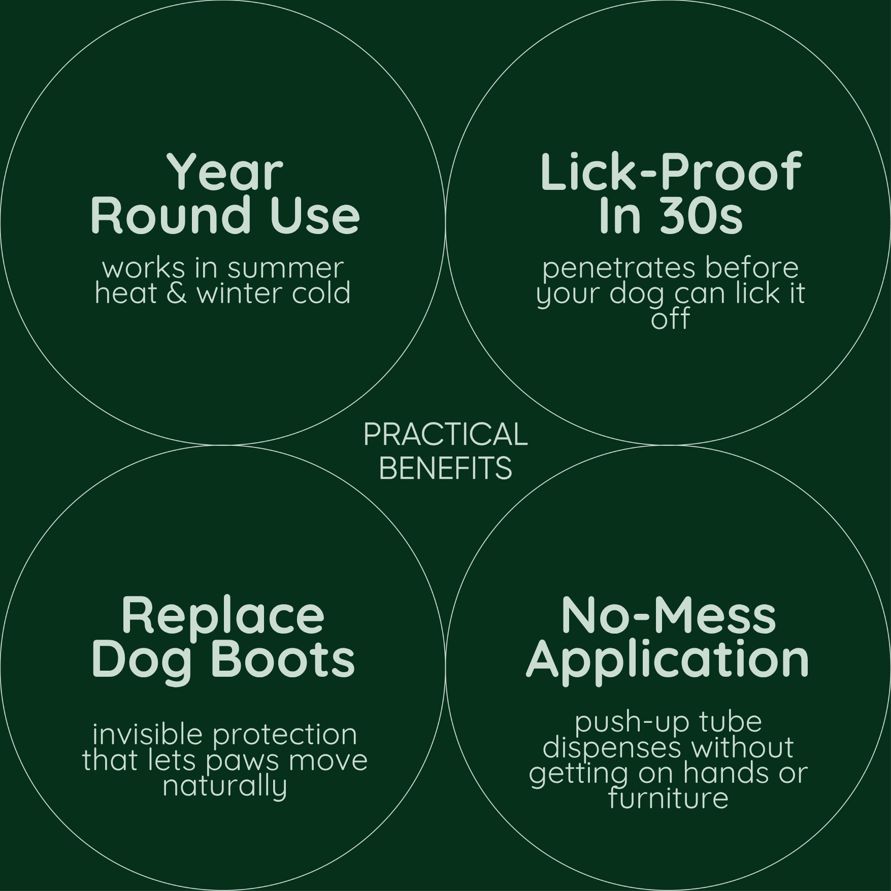 - WEATHER-PROOF PROTECTION: Creates an invisible barrier against hot pavement, road salt, ice, and rough terrain—replacing restrictive boots while maintaining natural paw mobility and comfort.